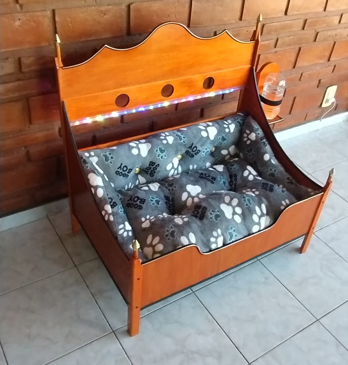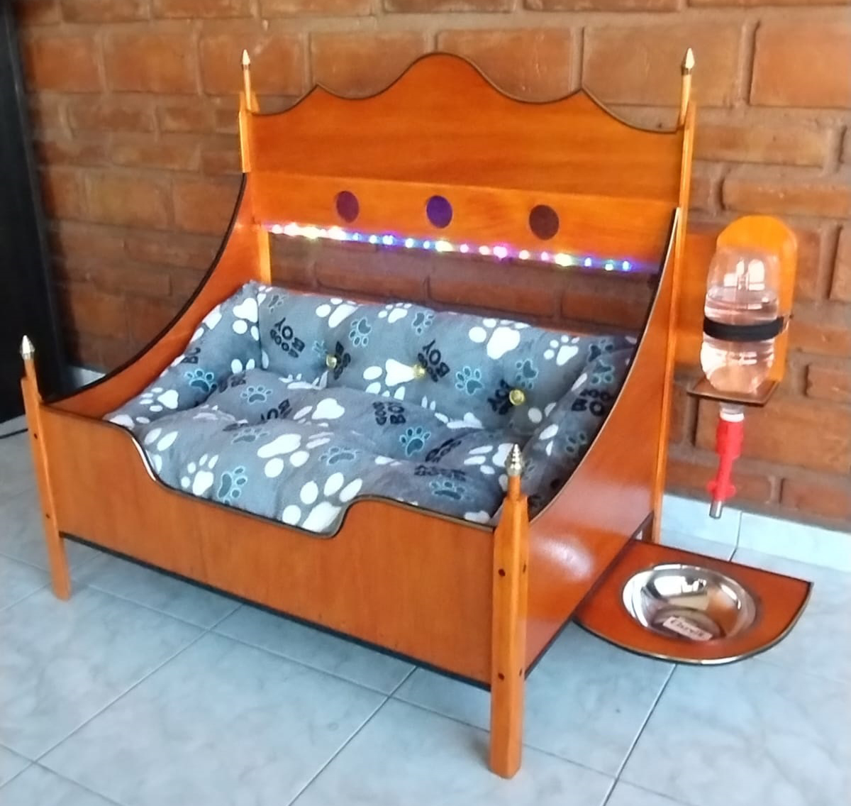 DETALLES: Echas de madera con 3 manos de impregnante, con vidrio luminoso como velador, colchón relleno de Vellón siliconado y tapa canto dorado.