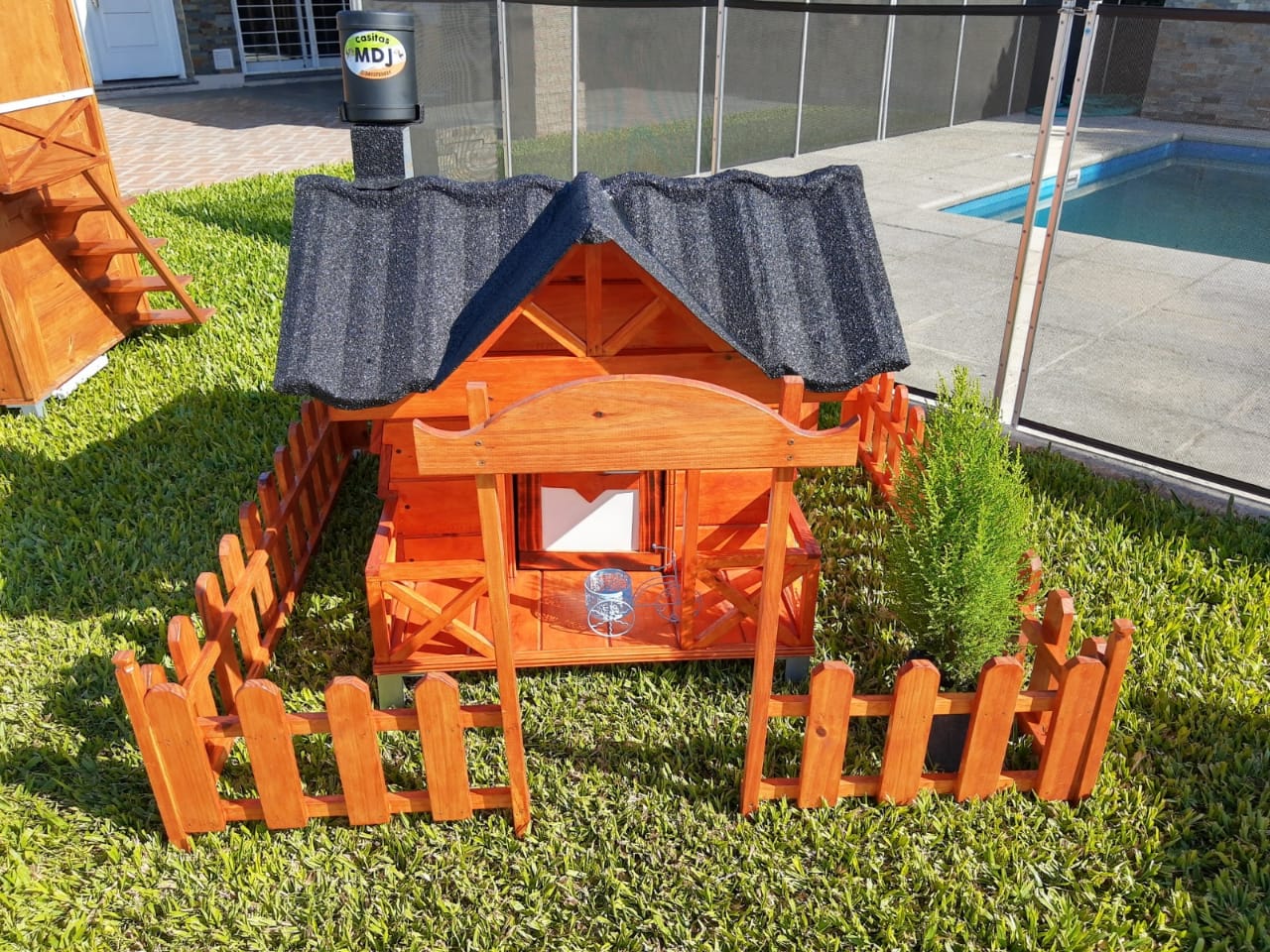 La forma de esta casita esta inspirada en el confort de una cabaña. Simple pero acogedora la cual brinda una estética muy hermosa en el espacio donde se coloque.